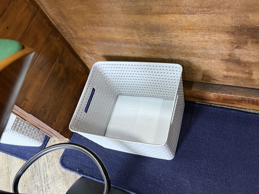 13:20頃到着で先客1後客6で、退店時外待ち3発生。厨房に店主さんワンオペ体制。足元に荷物かごの用意あり。