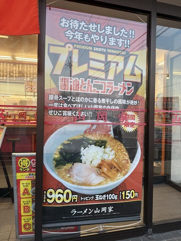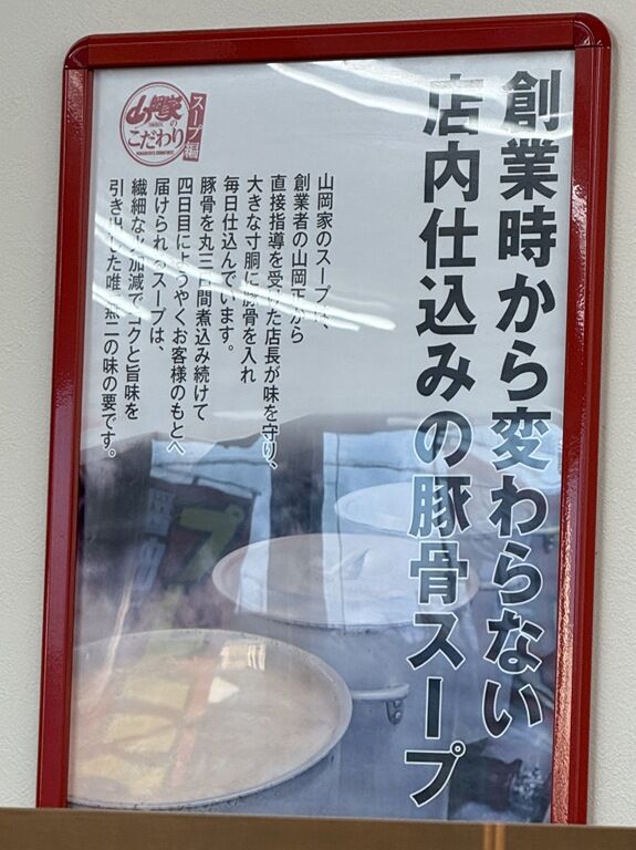 2003年7月オープン。「山岡家」の埼玉県出店1号店。「ちゃんのれん組合 / ちゃん系ラーメン」YouTubeチャンネルで、バンタムさんが25年ぶりに山岡家を食べて感動したというのを見て気になり、実際激推しいただいたので行ってみることに。