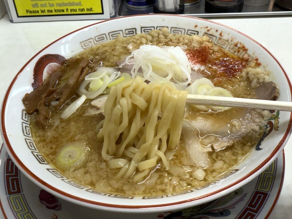 スープはさらりとした味噌味。スープ表面にたっぷりの背脂。デフォの動物性のスープに味噌ダレだけだと、おとなしめの線の細い味噌ラーメンになってしまいそうですが、大量の背脂が入ることで、パンチとインパクトのある魅力的な味わいに昇華。味噌と背脂のコクが合わさってとっても美味しい!