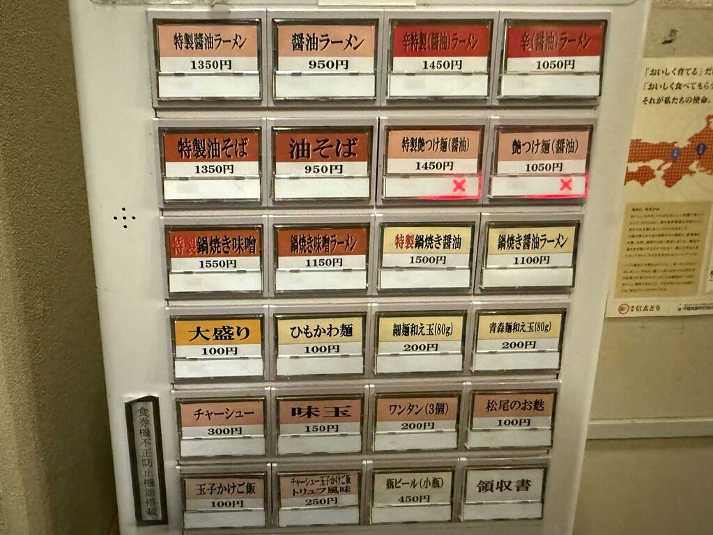 青森麺和え玉200円、他。