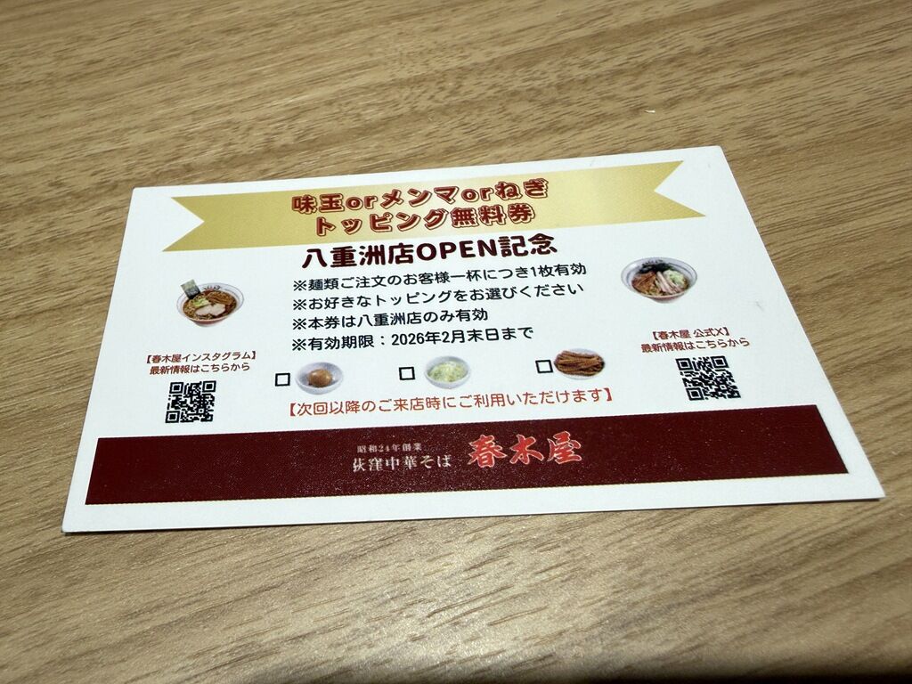 次回使えるトッピング無料券配布中。