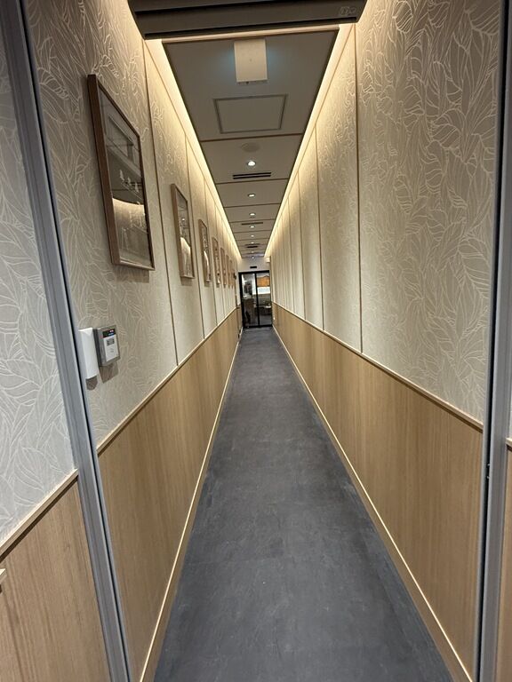 食券購入後長い廊下を渡って奥の店内へ。表側「富士そば」店舗の裏の空間に店舗に作った形態。