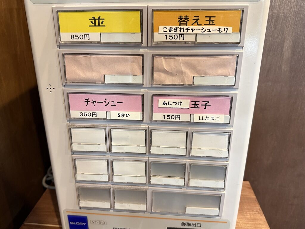 定刻1分前嬉しい早開け。開店時自分含め待ち6名。入店するとまず券売機で食券購入です。