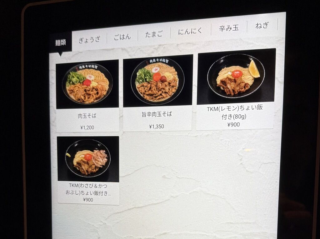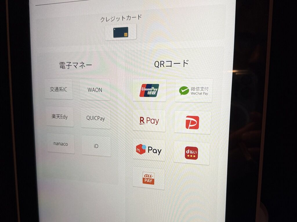 入店前に、まず店頭タッチパネル式券売機で食券購入です。なお決済方式は現金使用不可。完全キャッシュレス。