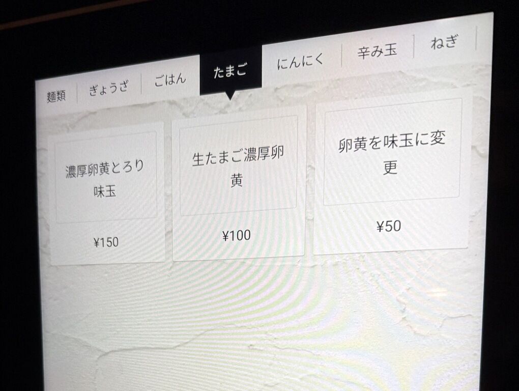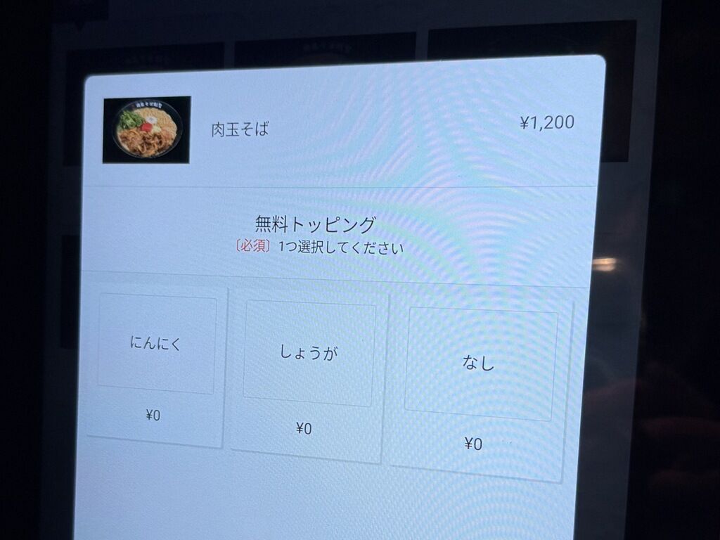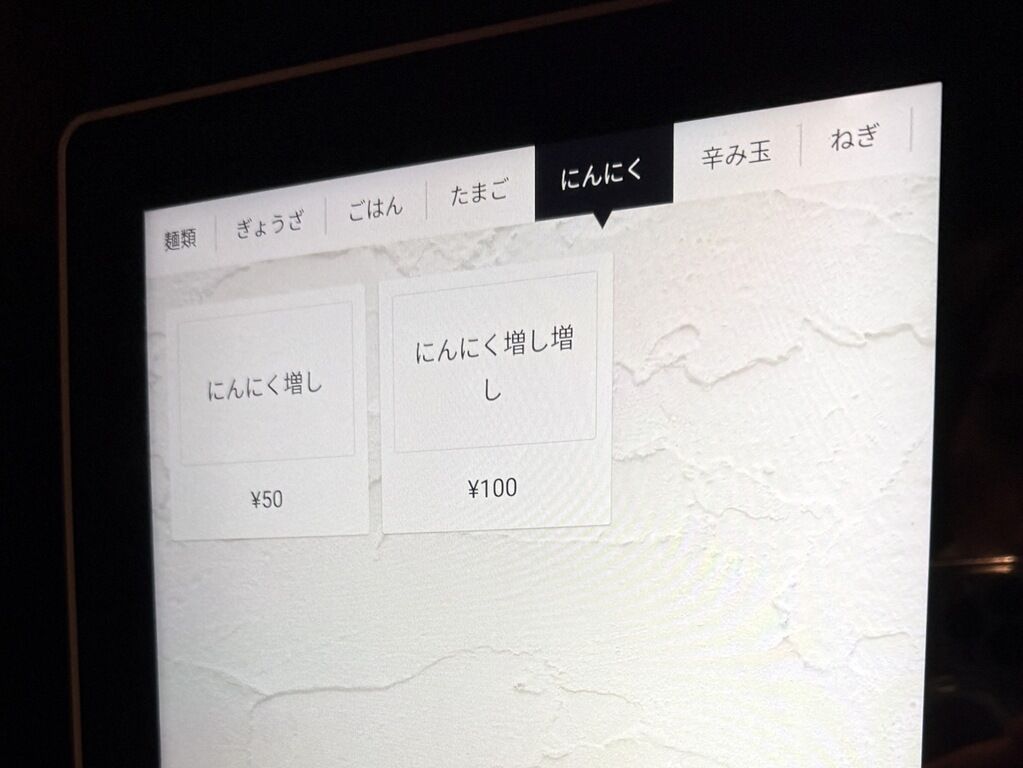 無料トッピングはにんにくorしょうが、券売機で指定します。