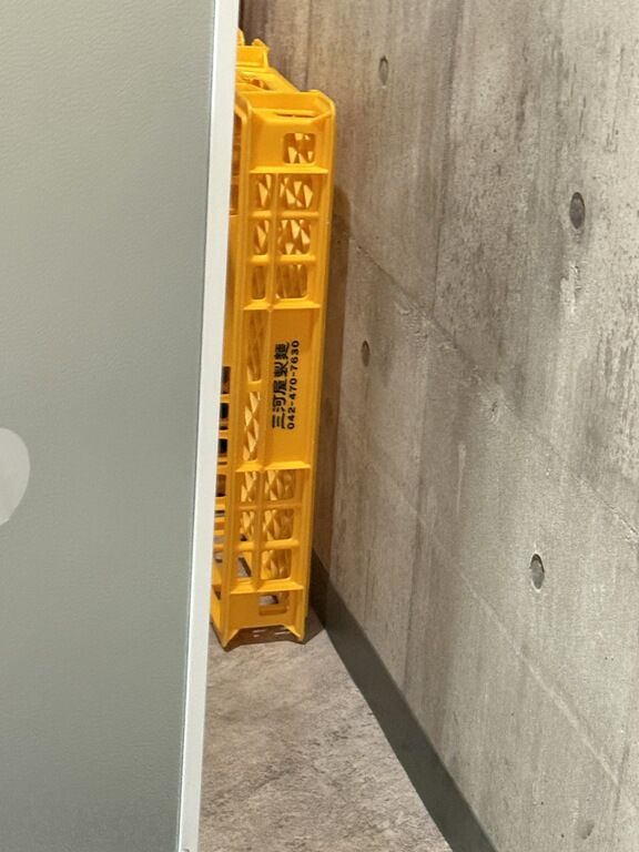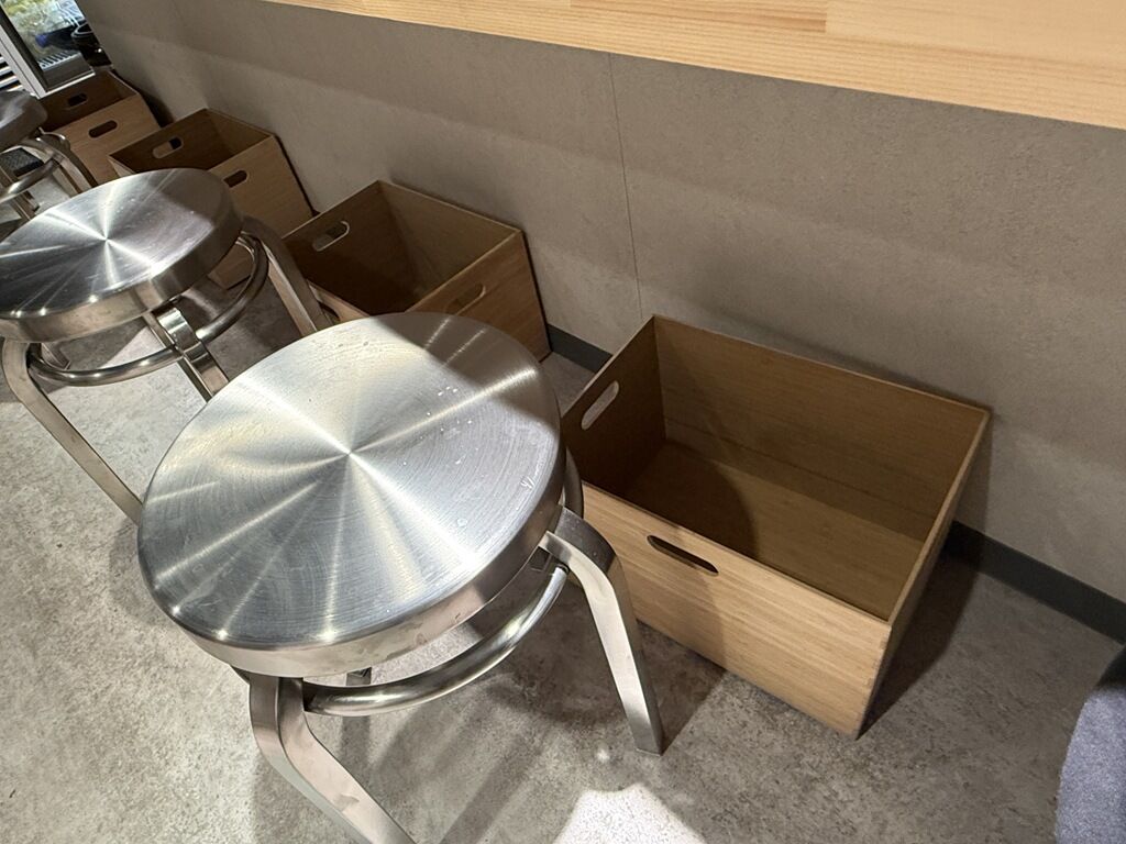 足元に木製荷物かごが用意。