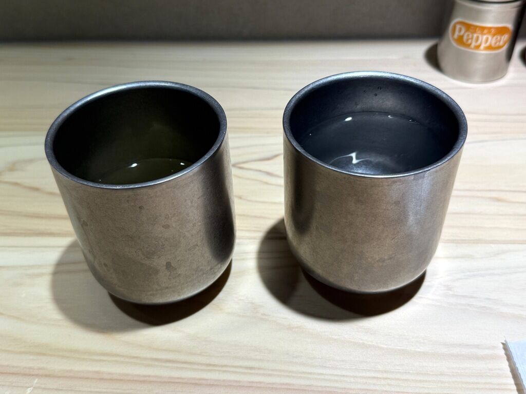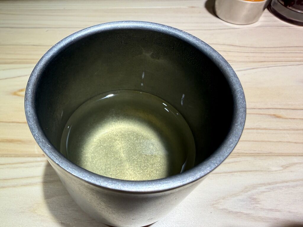 着席と当時にお冷やと出汁が出てきます。