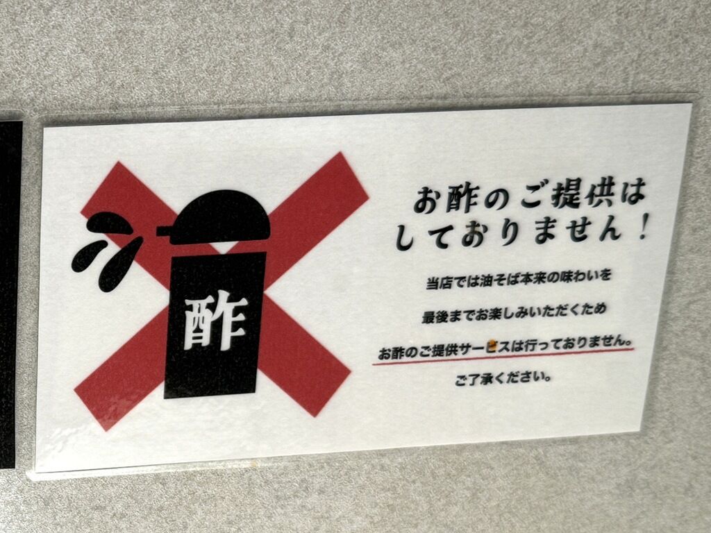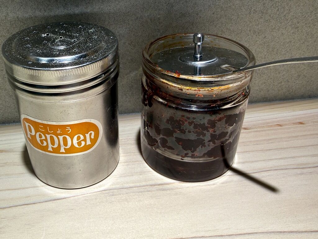 卓上調味料は胡椒、特製辛味醤。油そば専門店で定番の酢は敢えて提供しないポリシー。