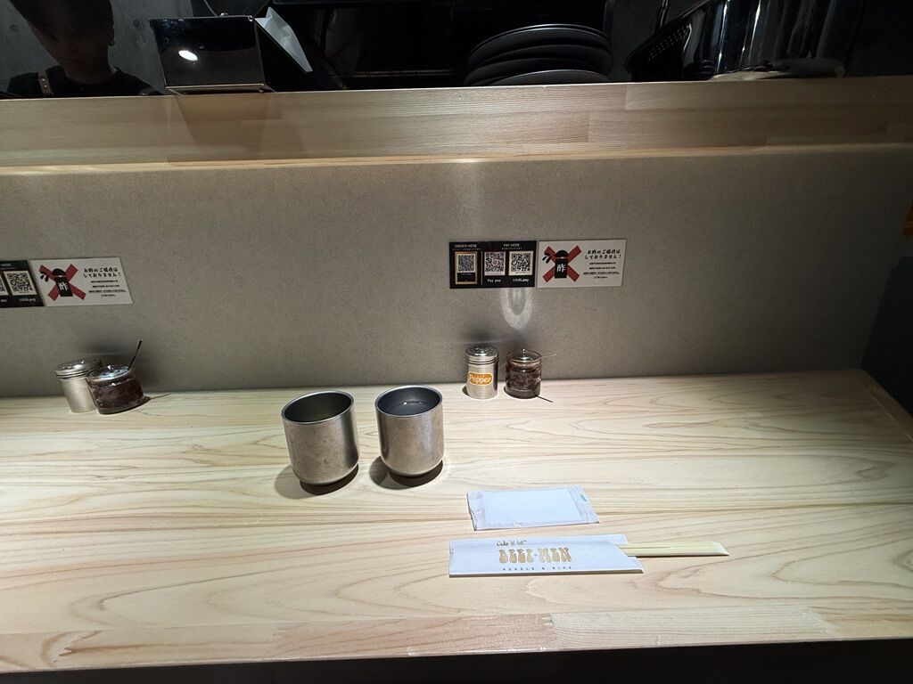 店内は厨房前に真っ直ぐなカウンター5席、4人卓x1、2人卓x1。18:30頃到着で先客3後客なし。厨房には調理の女性2、サポートの男子1。
