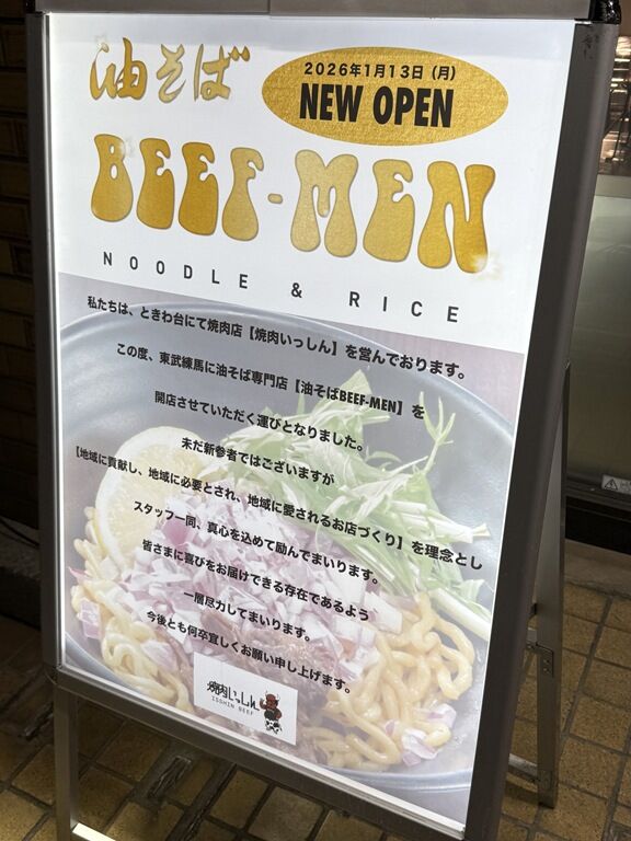 2026年1月24日、東武練馬の新店「油そば BEEF-MEN」へ。