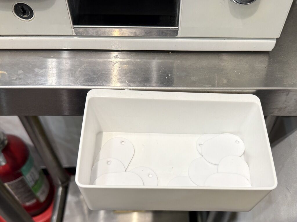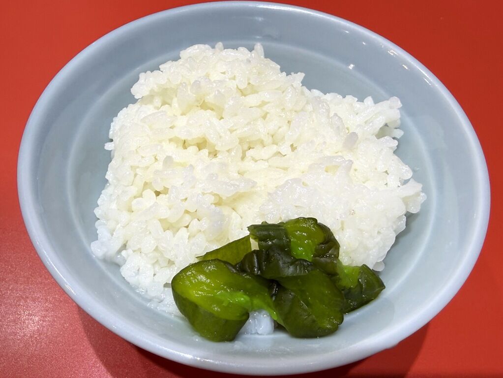 半ライス一杯無料サービス。希望の場合は白プレートを初見に添えて提示。