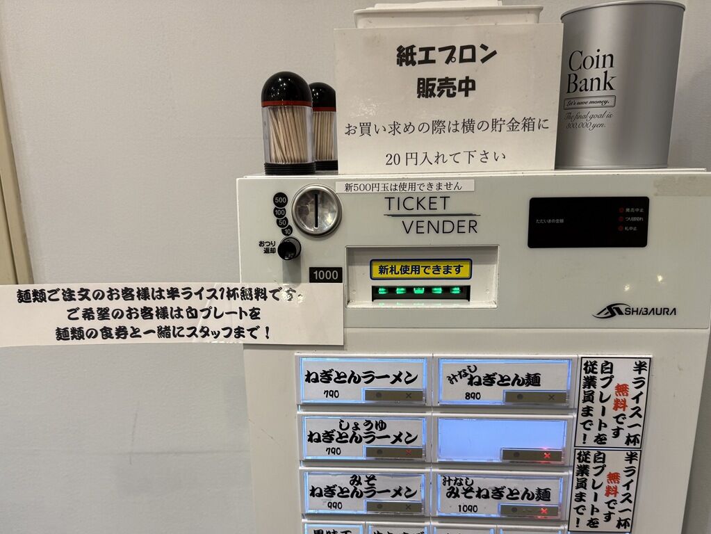 順番に呼ばれて店内へ。入店するとまず券売機で食券購入です。