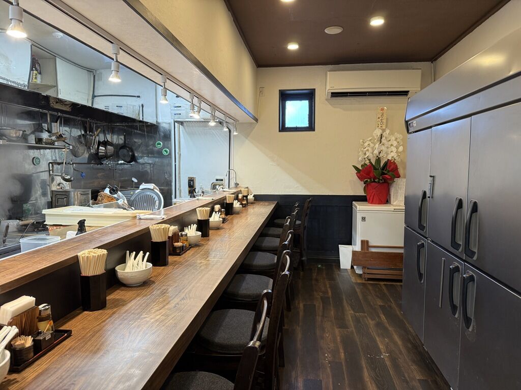 店内は厨房前に真っ直ぐなカウンター8席。中待ち席2席。