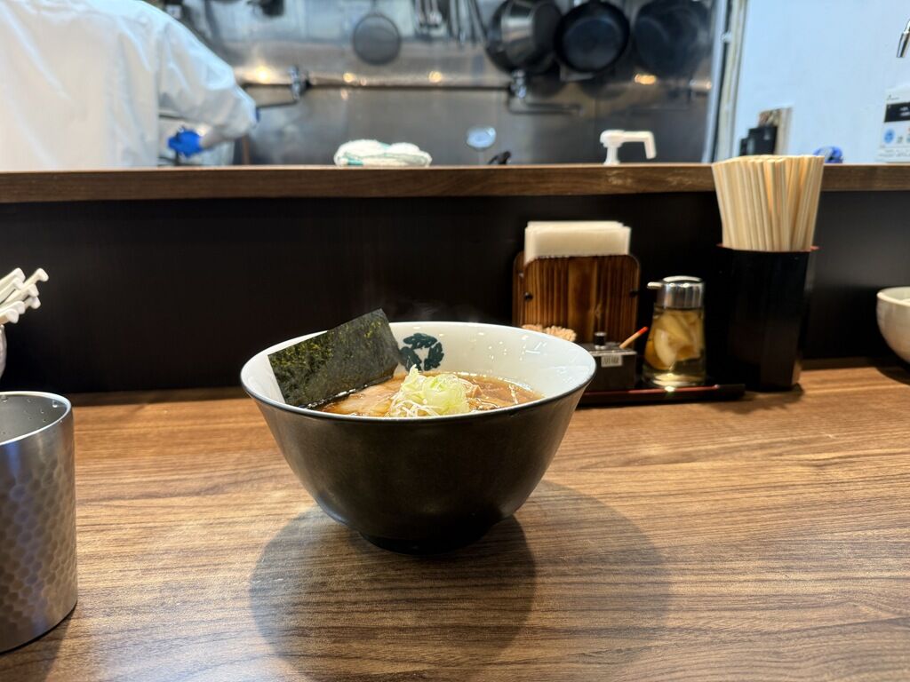 2026年1月25日オープン。TRYラーメン大賞2023と2024の名店醤油とつけ麺清湯の2部門二年連続受賞、食べログ百名店2024・2025二年連続認定「とものもと」と、TRYラーメン大賞2019新人賞つけ麺部門3位受賞、食べログ百名店2025認定「長男もんたいちお」で修行された、イッシー(一志優)店主のお店。昼のみ営業のためずっと来れず、待ちに待ったたオープン後最初の土曜日に凸撃。
