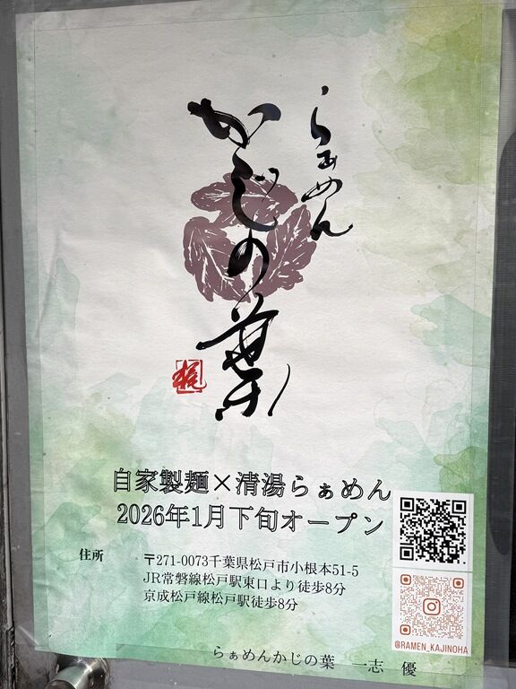 2026年1月31日、松戸の新店「らぁめん かじの葉」へ。