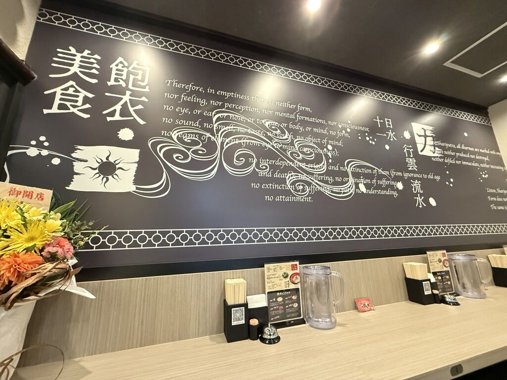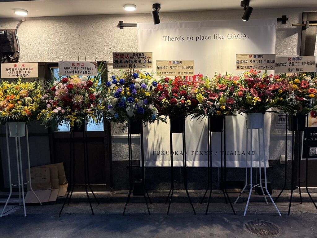 店頭開店祝花は凪生田さん、凪スピリッツジャバン、中華そばムタヒロ牟田さん、他から♪