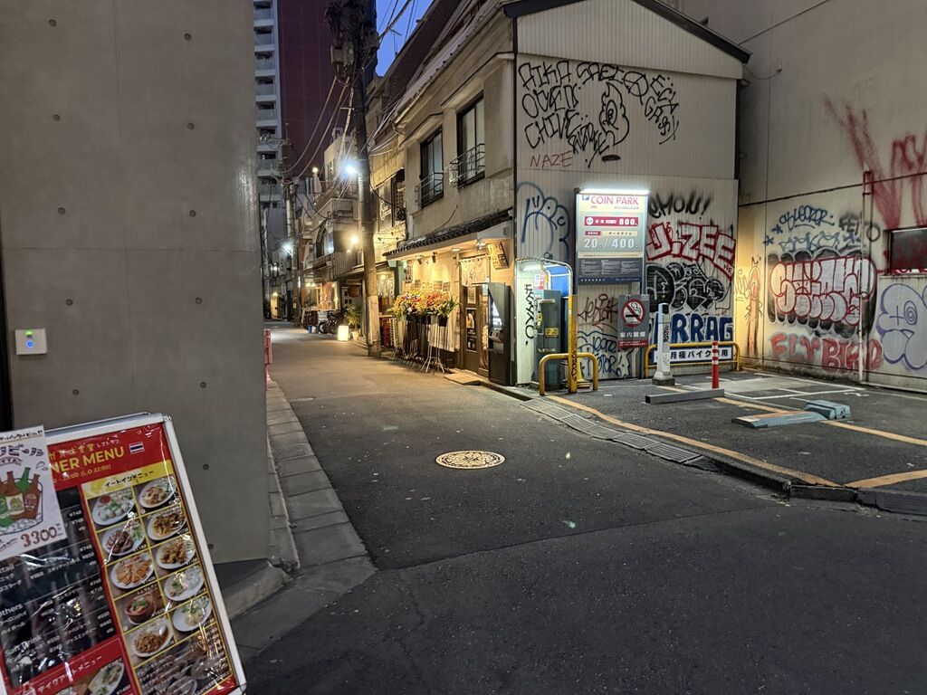 R246青山通りと並行する路地裏。スタバの向かって右の路地入ってすぐの交差点を左に曲がった先右手。CP隣。長寿庵 赤坂支店の跡地。
