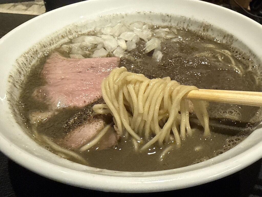 三河屋製麺製の麺はストレート中細タイプ。お馴染みの低加水パツパツではなく、つるシコでもちもち感すらあるタイプ。濃煮干しパツパツ麺に食傷気味の方こそ新鮮にいただけます。