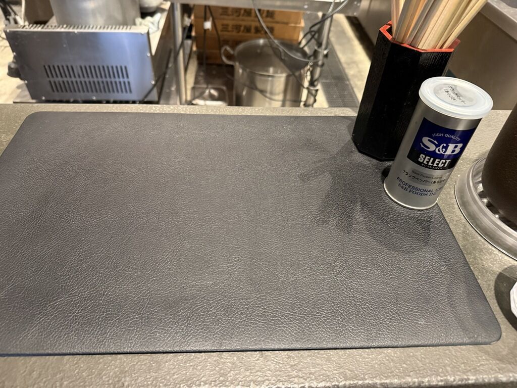 BGMはシティポップス。箸は割り箸。卓上調味料はS&Bブラックペッパー。
