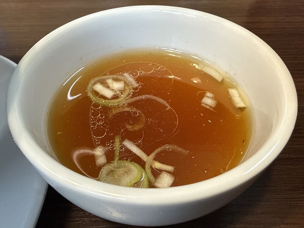 付属のスープはあっさり淡麗清湯醤油味。町中華の炒飯に付いてくるスープ的な味わい。油そばの割りスープとして、つけ麺風につけ汁として使えますが、自分は口直しのスープとしていただきました。