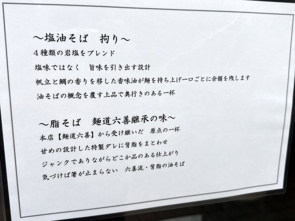 2026年2月6日オープン。先立つ2月2日・5日、ワンコインでプレ・オープン実施。亀有「麺道 六善」の姉妹店。「らーめん新山」の後こちらへ。