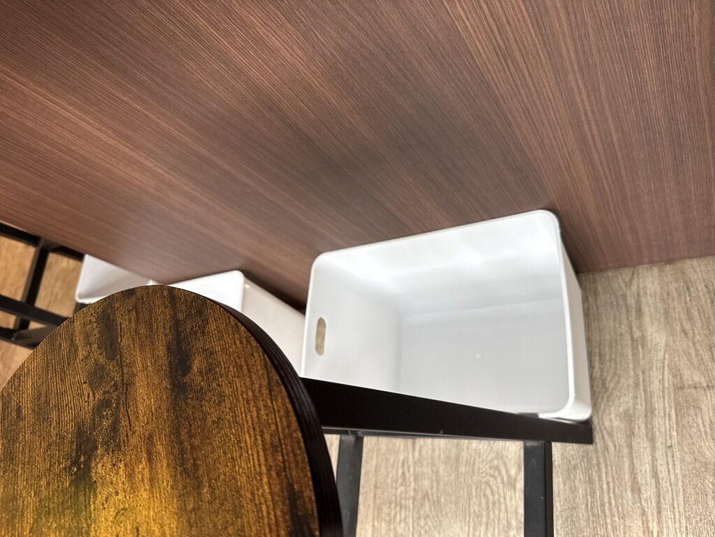 足元に荷物かごあり。髪エプロン、髪ゴムは券売機上に用意あり。