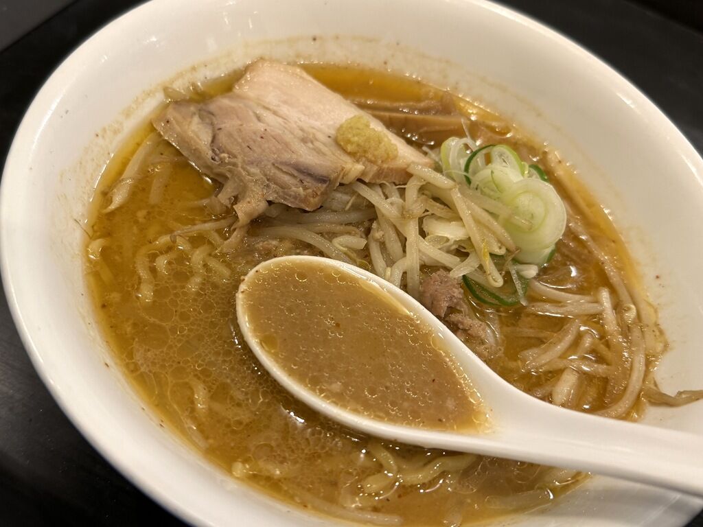 スープは濃厚熱々な味噌味。中華鍋で炒め煮したスープは、表面をラードを油膜が覆っていて、最後まで高温熱々をキープ。油膜効果で湯気が立ってませんが、火傷注意の激熱。炒めた味噌が最高に香ばしく、ガチな箸とレンゲが止まらない旨さ。まさに札幌のレジェンドのあの味を彷彿とさせる味ですごく美味しい!
