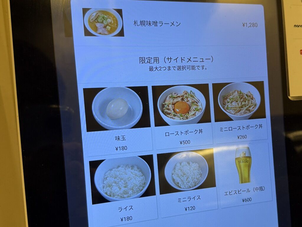 「札幌味噌ラーメン」は「限定メニュー」タブより選択。