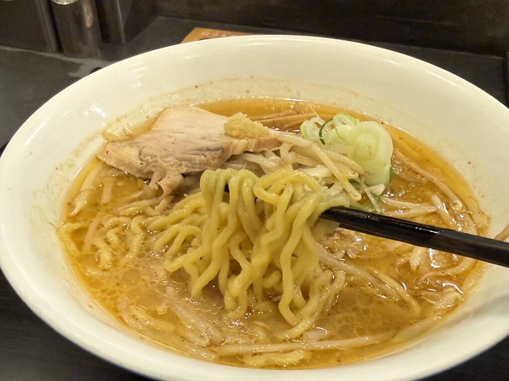 麺は京都「麺屋棣鄂」製の中太縮れタイプ。麺もまた札幌味噌ラーメンらしい黄色く縮れた固めの食感で、雰囲気が良く出ています。