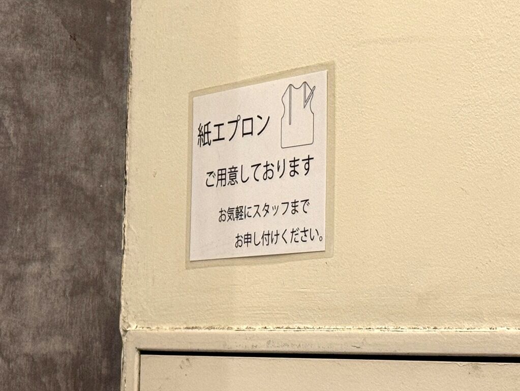 紙エプロンは申告制ですが、貼り紙に気づかなかったら要否を聞いていただきました。