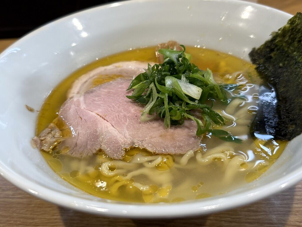 「中華そば白」は、鶏ベースのスープに貝出汁のスープを合わせ、タレには白醤油を使用。