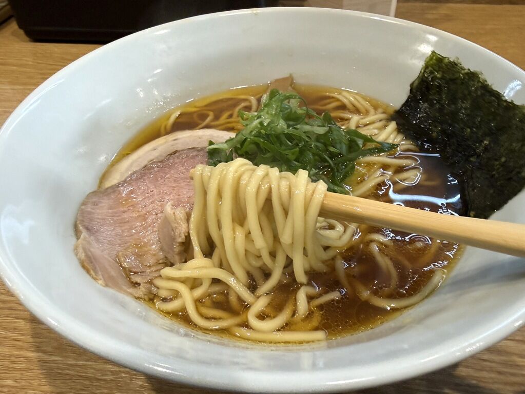 スープはさらさらの清湯醤油味。大山鶏と豚を炊いた清湯に煮干しを効かせたスープ。タレは同じあきる野市のキッコーゴ醤油。そこに店内で発酵させた出汁麹を合わせてまろやかで奥行きのある味に。出汁の旨みの輪郭とコク、醤油れの力強さ、風味、深みが実に印象的。「白」と「黒」比べると、現時点では「黒」の方が分かりやすく訴求力高く惹きが強く素直に醤油ラーメンらしい味わい。さらにしばらくするとまた食べたくなる求心力のある一杯でとっても美味しい!
