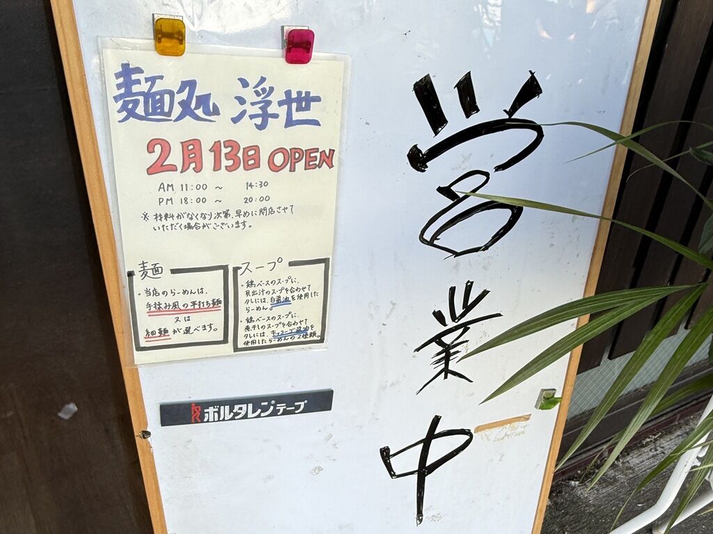 2026年2月13日一粒万倍日にオープン。新所沢「らーめん こてつ」創業時から店を支え、長年店長を務められたエース級な方の独立店。それだけにとどまらず、東秋留「あきる野タンメン 香」と店主さん同士幼馴染で、「浮世」と「香」は姉妹店の位置づけとなるそうです。