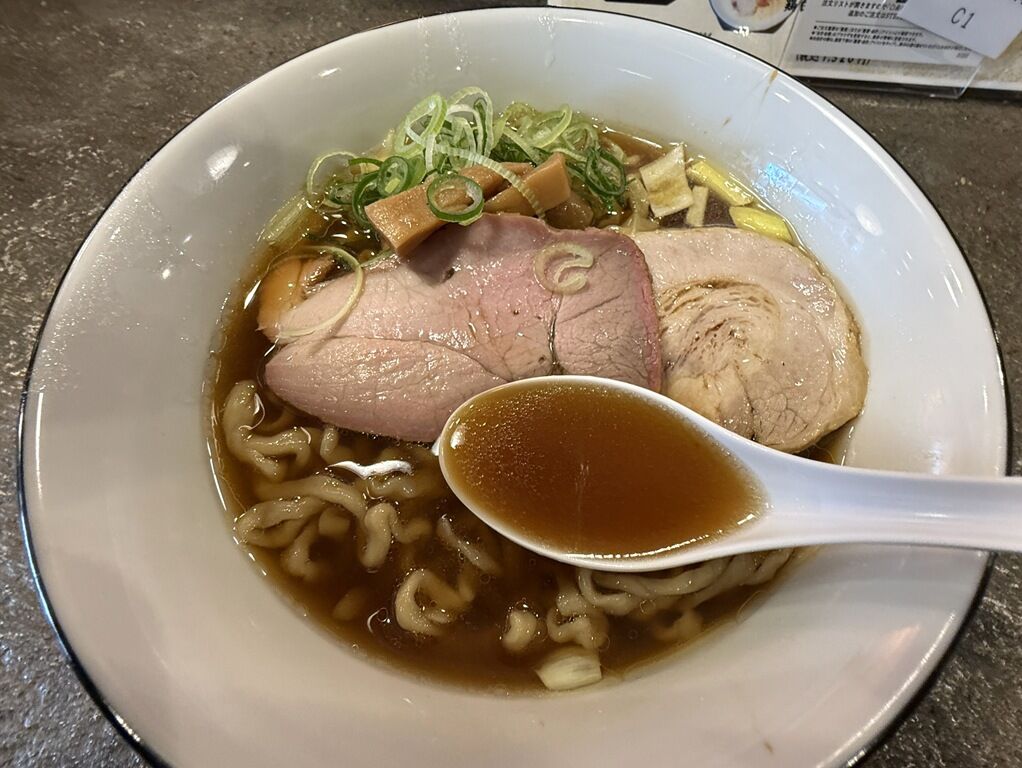 スープはさらさらの清湯醤油味。スープ自体は「恵ばら」と変わらず鶏と昆布と魚介の優しくも旨味たっぷりな、思わずごくごく飲んじゃいそうなほど、滋味あふれる沁み入る味わい。どなたにも好まれそうな、素材本来の旨みが感じられる味で、それでいてしっかり洗練された上質さもあり、とても美味しい!