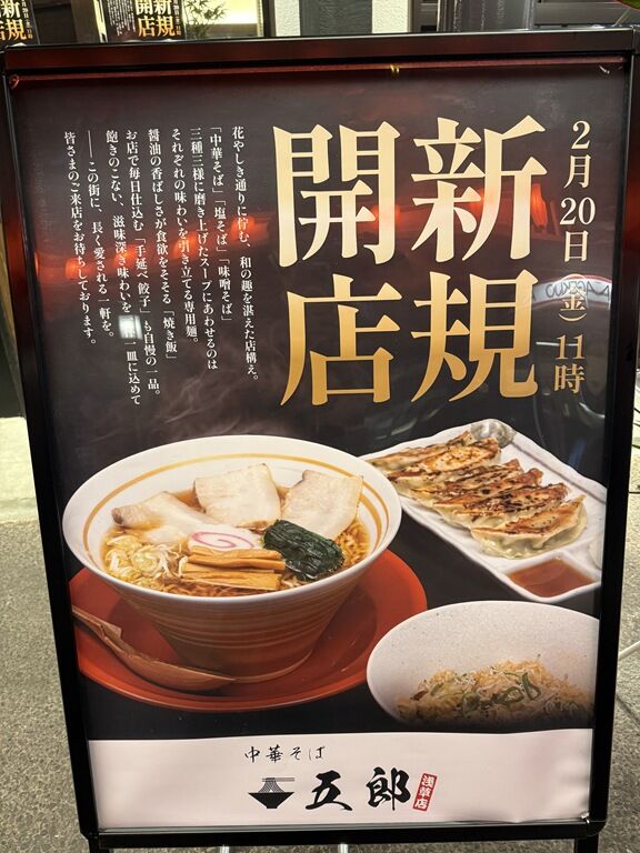 2026年2月20日一粒万倍日、本日オープンの新店「中華そば 五郎 浅草店」へ。