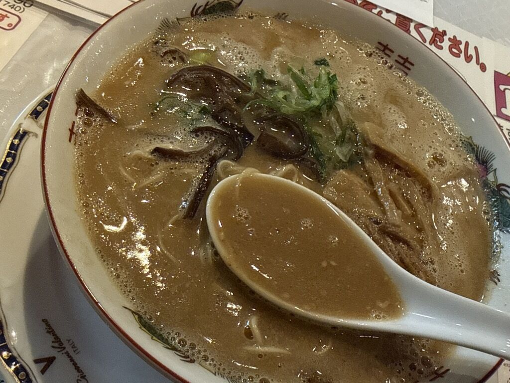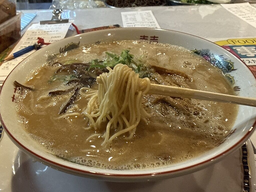 褐色で泡立つスープはさらりとした豚骨ちょい醤油味。豚骨というか豚頭を炊いたスープで、粘度はありませんが、骨粉のざらつき感や熟成感はしっかりあります。クサ旨を期待すると、熟成臭は無く拍子抜けかもですが、さらっとしつつうま味たっぷりで本場の屋台さながらの味わいは絶品!二毛作のレベルを遥かに超える佐賀の風を感じる味でばりちかっぱ美味しい!