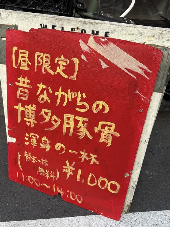 2026年2月2日、ジンギスカン専門店がランチタイムに昔懐かしい博多ラーメンの提供をスタート。「中華蕎麦 国領大門」の後、「伊太そば 豚骨イタリアンラーメン&バル」の前にこちらへ。
