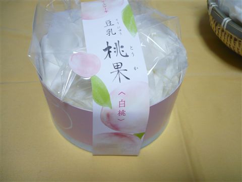 こちらは、銀のぶどうの夏季限定「豆乳桃果<白桃>」という製品です。「しらら」の方は100%ピュアチーズケーキで、こちらは豆乳ベースのチーズケーキです。