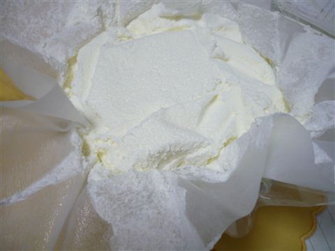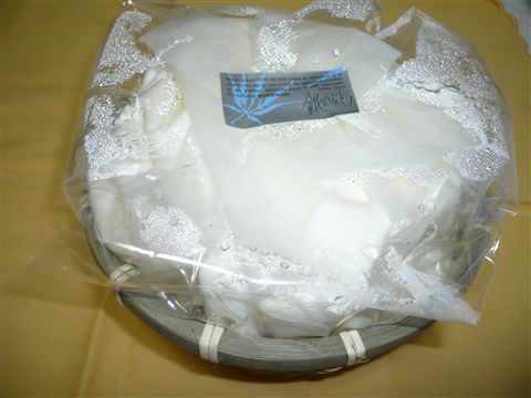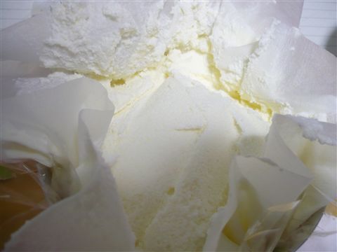 かごに盛ってあるという、限定の高級豆腐のような見た目です。ですが、中身はレアチーズケーキです。