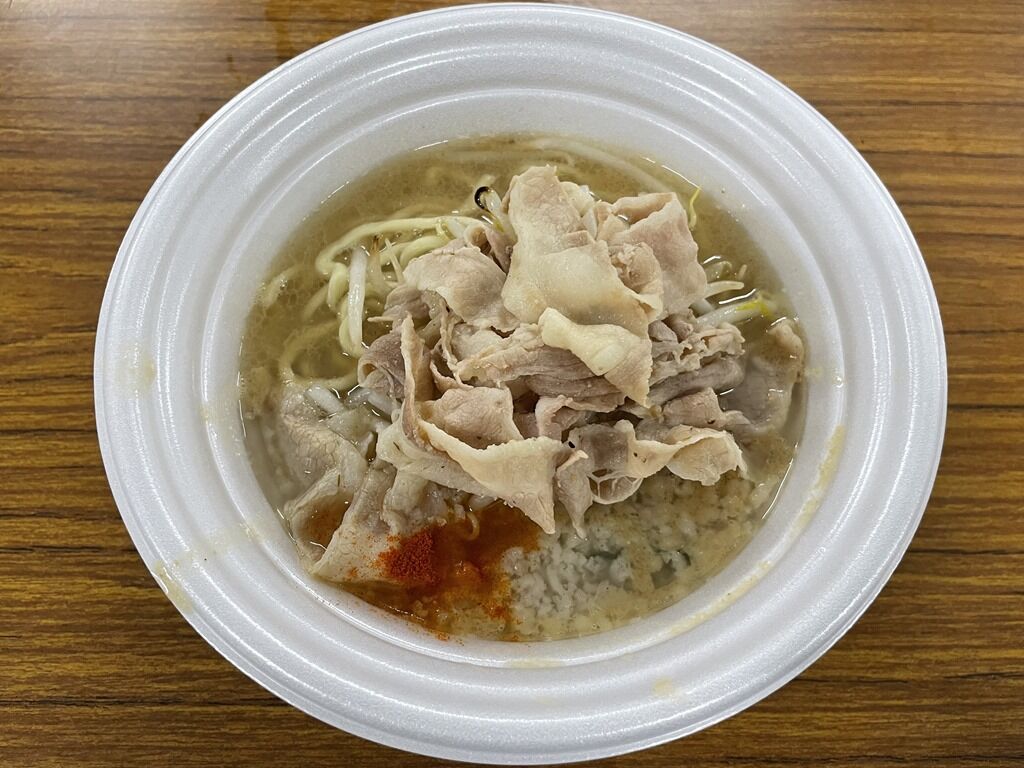 ただでさえ濃厚な味噌スープに背脂たっぷり入り。具は豚しゃぶ肉ともやし、ニラ。