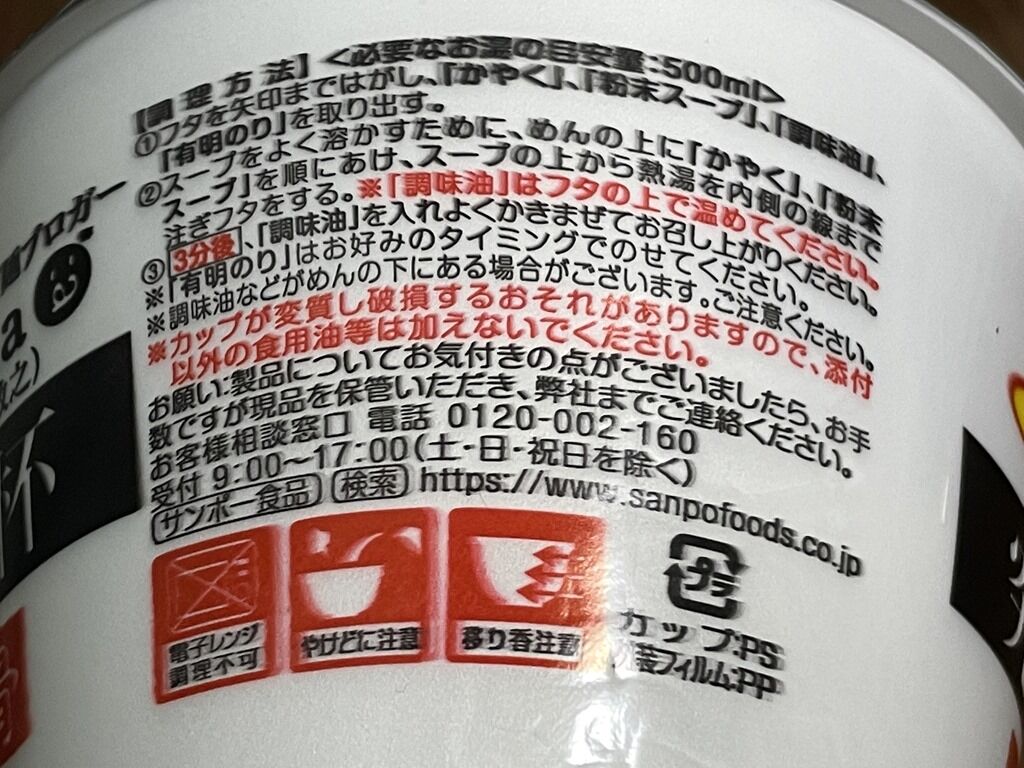 サンポー食品は、佐賀県に本社のある即席めん(カップめん、棒状ラーメン)及び乾めんのメーカー。1921年(大正10年)に「米穀卸大石商店」として創業。マスコットキャラクタが可愛い😍今回は、日夜カップ麺活に励んでいるtaka:aさんに、サンポー食品側からオファーして共同開発が実現。