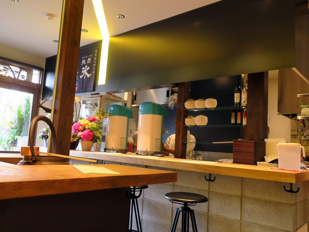 店内は小上がりに2人卓x1、4人卓x2、囲炉裏型のターブル6席、カウンター2~3席、掘りごたつ式の4人卓x2。11:50頃到着で、終始貸切状態。この日は涼しかったですものね。
