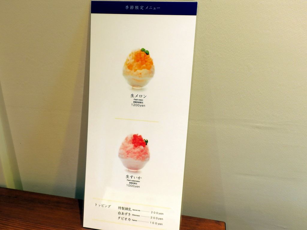 期間限定メニューは、生メロン1200円、生すいか1000円。他にトッピングあり。まんパクではにんじん・トマト・かぼちゃ等、野菜のシロップが人気でしたが、こちらではフルーツと甘味のラインナップ。