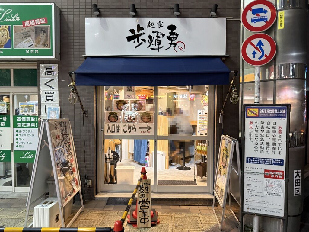 2025年8月31日オープン。中野坂上「麺家 たいせい」の2号店。オープン初日開店前に空前絶後の462人の行列を形成。一度夕方にアプローチを試みるも、早終いで途中Uターン。本日は18:00までやるとこのことで、満を持して突撃。